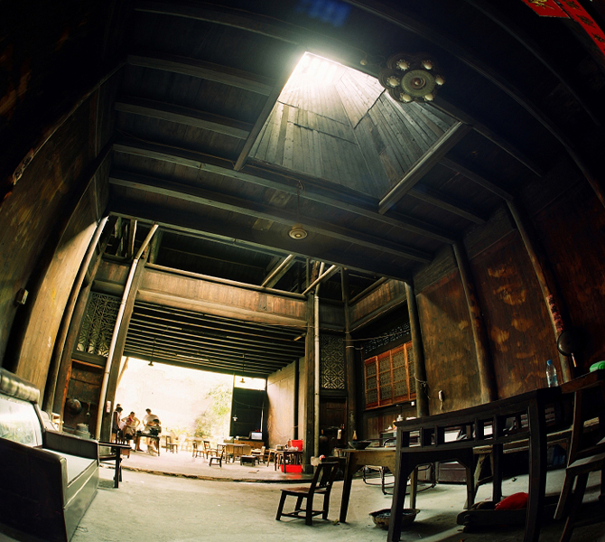 院內(nèi)廂房按家室的輩分依次居住。廂房的木窗雕龍刻鳳,每一板雕刻都是一個美麗的傳說。其中《梁?!贰ⅰ短煜膳洹?、《蚌殼燈》、《彩龍船》、《鼠叼葡萄》、《老鷹抓雞》等雕刻更是入木三分,惟妙惟肖。樓上則主要用于囤積貨物,擺放雜物、晾曬衣物等。后側(cè)建有伙房和廁房,院落后部則是花園,花園的盡頭緊連著河邊的私家碼頭。