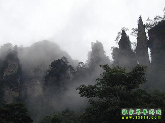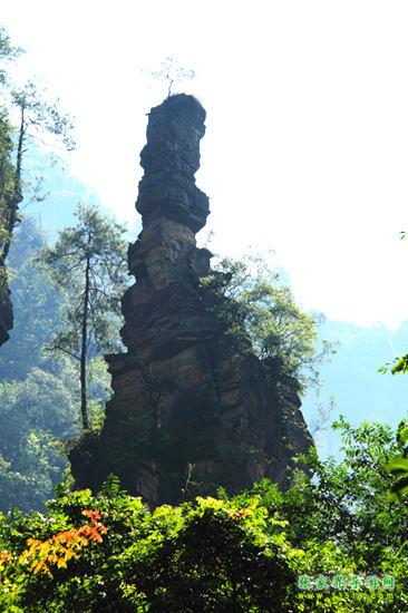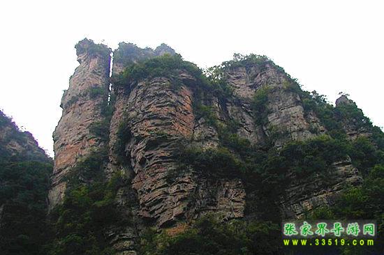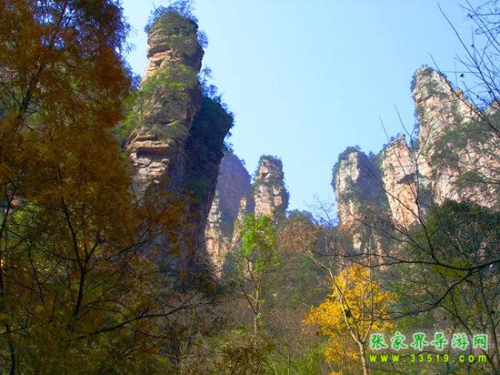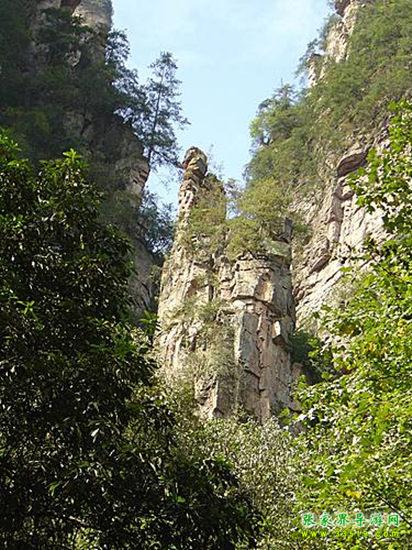 山谷中并排而立的三支山峰,有模有樣,有人叫他們“師徒取經(jīng)”,說那是唐僧、孫悟空、沙和尚三人的“合影”??催^《西游記》的朋友,可能對(duì)這片風(fēng)景有似曾相識(shí)的感覺,這兒曾是中央電視臺(tái)拍攝《西游記》的外景地。有些客人經(jīng)常問,重要人物豬八戒先生怎么沒有趕上這個(gè)“合影”呢?他忙里偷閑,在后面背媳婦去了(我們剛才不是看過“豬八戒背媳婦”那個(gè)景點(diǎn)嗎?)不小心誤了時(shí)辰。如此看來,愛情和事業(yè)有時(shí)難免會(huì)有點(diǎn)矛盾。