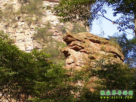 密林中有兩塊石頭,很像兩只龜重疊在一起,探頭探腦的樣子,正向著金鞭溪爬去。有人說這是“夫妻雙雙把家還”。這兒有一個(gè)荒誕的故事:億萬年前的一個(gè)晚上,海龍王通知居住在這一帶的蝦兵蟹將及所有手下,明天天一亮海水就要消退了,必須全部及時(shí)撤走。這兩只情龜只顧著花前月下,把海龍王的話當(dāng)耳邊風(fēng),第二天早上起床,望著海水已經(jīng)遠(yuǎn)遠(yuǎn)地退去了,后悔莫及。他們爬呀爬,只希望有一天這溪水能把他們帶回大海。有的人有不同的“版本”:這兩只龜藏在這深山老林干什么呢?為了躲避“計(jì)劃生育”。張家界像烏龜?shù)?hellip;峰很多,那都是它們干的好事呀!