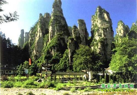 南面龍尾溪,北面鴛鴦溪,西面金鞭溪,三水東流匯成索溪,四條溪水,四個(gè)山門,故稱此處為水繞四門。水繞四門又名止馬塔,相傳漢代張良?xì)w隱山林,曾來到這里,他的馬因迷戀這山環(huán)水繞、如詩如畫的風(fēng)景,走到這兒硬是不走了。據(jù)說西北角香爐巖下有張良墓(有待考證),有人寫詩應(yīng)合:“踏遍青山尋古人,四門水繞得佳城。香爐巖下舊土墓,漢代留侯張良?jí)灐?rdquo;相傳這兒還曾是明朝初年土司王向大坤(自命為天子,人稱向王天子)揭竿起義的地方,因此,那里有一支山峰被命名為萬歲牌,另外一大片山峰被稱作四十八大將軍巖——真可謂是“武陵多奇景,誰與巧安排?千年萬載留與時(shí)人任剪裁!”