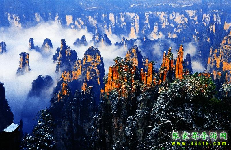 索溪峪風(fēng)景區(qū)索溪峪,西南緊連張家界,西北毗鄰天子山,面積一百四十七平方公里,有景點(diǎn)二百多處。索溪峪山、水、洞自成一體 ,奇峰起伏錯成趣;水,泉清瀑美,千姿百態(tài);洞,幽深神秘,其妙無比。那恍若仙境的地下宮殿黃龍洞,天然浮雕羅列、充滿詩情畫意的十里畫廊,碧波蕩漾的寶峰湖,充滿傳奇色彩的百仗峽及太虛幻境般的西海云霧,一剛一柔、形態(tài)風(fēng)格迥異的鴛鴦瀑 無不令人流連忘返。遠(yuǎn)在明代中葉,就有人在巖壁題詩贊曰: “高峽百丈洞云深,要識桃源此處尋。”