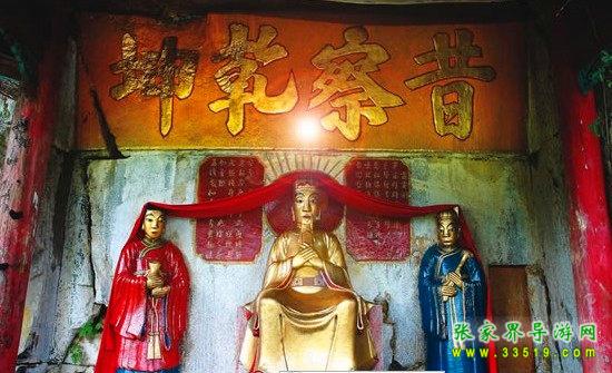玉皇洞石窟位于張家界城西約7公里的麻空山南壁,為清代本地鄉(xiāng)紳李京開獨(dú)資捐修。李京開又叫李五瑞,別名九洞樂,號(hào)識(shí)破生。他生于乾隆七年(公元1742年),道光乙酉年(1825年)去世,享年83歲。李先生家道殷實(shí),富甲一方。少時(shí)勤奮讀書,頗有才華,數(shù)十年奔波仕途,但屢試不第,官場(chǎng)無望,于是看破紅塵,另尋安慰,請(qǐng)工匠,耗巨資,憑借麻空山天然溶洞,按上、中、下方位布局,巧妙構(gòu)思,開鑿成“天堂”、“人間”、“地府”三層共八個(gè)洞。另外,在離此約3公里的峰泉洞另鑿一洞,故有“九洞樂”別名。玉皇洞石窟上層為玉皇洞,人間層有玉金洞、毫筆洞、墨池洞、虎龍洞、雄獅洞、孔圣洞,地府為因果洞,八洞組成一個(gè)完整的混沌世界。居八洞之首的玉皇洞,雕有玉皇大帝神像,意為“天堂”至尊,統(tǒng)帥中層的“人間”和下層的“地府”,故八洞統(tǒng)稱玉皇洞。此洞于1799年動(dòng)工,到1807年完成,歷時(shí)八年。洞內(nèi)雕鑿了一些歷史人物的神像以及大量詩詞匾對(duì),不僅石雕精湛獨(dú)特,雕像神韻生動(dòng),書法遒勁大氣,而且在石窟藝術(shù)的主題構(gòu)思上,抒發(fā)了主持捐修者李京開懷才不遇、憤世疾俗、向往太平盛世的情感,鞭達(dá)了腐朽的科舉制度,對(duì)于研究清代社會(huì)和科舉制度,以及當(dāng)時(shí)一般讀書人的思想情感,都具有一定的史料價(jià)值。整座洞窟東西長300余米,現(xiàn)存石像19尊,石刻50多處,是湖南省唯一保存完好的石窟藝術(shù)群,1959年玉皇洞被列入湖南省重點(diǎn)文物保護(hù)單位。