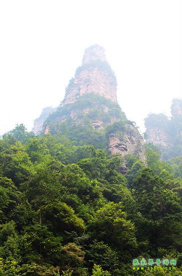 采藥老人是十里畫廊的絕景:一根獨立的石柱,很像一位老人,他彎著腰,頭上裹著一根頭巾,背上背著一個背簍,背簍里裝滿了各種各樣的中藥材。他滿臉皺紋,深邃的目光凝視著前方,神情好像有點憂慮。如果不是在有意識地觀賞,而是猛地一抬頭望見他,還真以為他就是某個山村里的土家族老人。