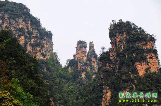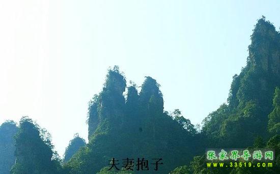 有三座石峰緊緊相連,就像一家三口緊緊的擁抱在一起,右邊的是爸爸,左邊的是媽媽,中間的是孩子,夫妻相向而對,擁抱著心愛的孩子,一幅其樂融融的全家福。
