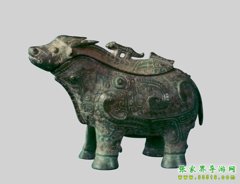 展出有商周時期至明清時期的各類文物100余件,其中包括:禮器、兵器、量器以及古人在日常生活中所使用的各類生活器具,是研究和了解衡陽先民在這塊土地上繁衍生息的最生動的教材;也是研究當(dāng)時衡陽處于楚越兩大文化相互生存和融合的最好的實物資料。如國寶動物紋青銅提梁卣、越式鼎、楚式青銅劍等等。在180平方米的展室中陳列了青銅精品90余件。其中以春秋動物紋提梁卣最具魅力。與它相媲美的商代青銅牛尊,工藝之精湛,美侖美奐。