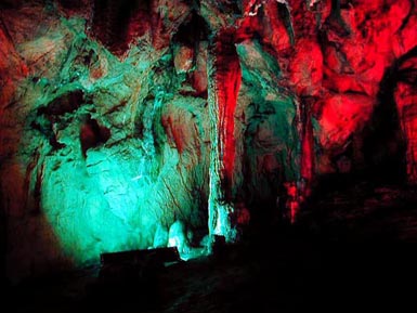 全洞只有一個裂縫狀的入口,由三組洞穴和18個“廳堂”組成,呈不對稱的樹枝狀展開,洞累計長達1870米,洞域總面積為84150平方米。洞內通道曲折幽奇,怪石叢生。入洞約300米,環(huán)顧四周, 好似“山窮水復疑無路”,而仔細探尋,上方竟有尺許小洞,其圓如鏡,只容鉆入,鉆入之后,則是“柳暗花明又一村”,入大洞天,令人咋舌,三號洞內,那只聞其聲、難見其形的地下飛泉瀑布,聲若虎嘯雷鳴,使人毛骨悚然。行至深處,深潭擋路,一座又窄又滑的天生“小橋”飛架其上,令人望而卻步。二號洞后段則是一個福地洞天。深處的“天窗”猶如一彎朗月高懸,景觀奇異,叫人更加流連忘返。錫巖仙洞的石筍、石林、石柱、石幔琳瑯滿目,千姿百態(tài),鬼斧神工,維紗維肖。“珍珠傘”勝景,美無倫比。