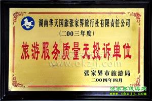9、 旅游全程設(shè)有質(zhì)量監(jiān)督投訴電話, 每位游客游程結(jié)束時發(fā)放游客意見單。如您對我公司的承諾和服務(wù)有任何疑問和建議,請直接撥打我公司質(zhì)量監(jiān)督電話:0744-8362219;當(dāng)時投訴,及時處理!