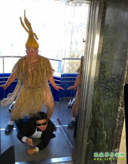 2012年10月31日,張家界市旅游局副局長、正處級調(diào)研員鄭亞平在張家界版《江南style》MV中客串“稻草鳥叔”,在劇中表演得入木三分。這位身著稻草的長者跨在一位年輕“帥哥”身上跳舞,動作之滑稽,表情之搞笑,可謂“史上最鳥的旅游官員”。鄭亞平坦言:“我年近60,在退休之前為張家界的旅游發(fā)展多奉獻(xiàn)自己,退休后我才不會遺憾!”