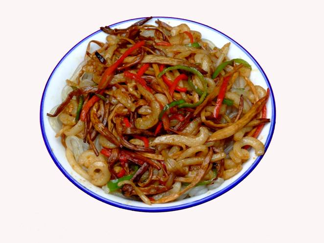 張家界草帽面》。 這個(gè)名字的由來是因?yàn)槔习宄D甏髦菝辟u面,臊子非常香,可以添加,面是他自己加工的據(jù)說是全手工的,老板人很古怪,每天只賣那么一點(diǎn),以前更古怪,只有星期1、3、5的晚上9點(diǎn)才有賣,想吃他家的草帽面居然還得跟他打電話問他是否心情好,出不出來賣面?預(yù)約了才不會(huì)撲空。但是就因?yàn)檫@點(diǎn)神秘,所以他家的面有些神話色彩。在汽站口百貨大樓東門對(duì)面的巷子口,一輛板上面掛了一頂草帽,那就是了,不過每天下午1點(diǎn)左右就沒了,要吃啊,嘿嘿,您趕早!能不能吃的上,得看您造化咯!