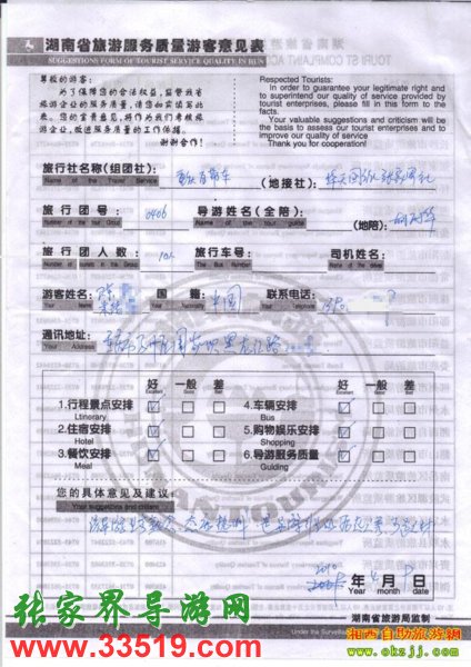 2010年4月9日重慶張先生一行10人張家界鳳凰旅游質(zhì)量反饋