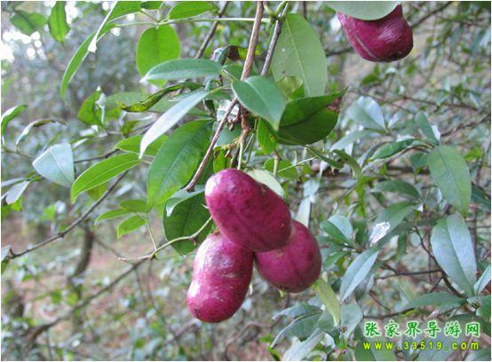 八月瓜又名八月炸,木通和三葉木通的果實,野生果品。因八月果熟開裂而得名。果形似香蕉,富含糖、維生素C和12種氨基酸,以及人體不能合成的纈基酸、蛋氨酸、異亮氨酸、苯丙氨酸、賴氨酸等。果味香甜,為無污染的綠色食品,有“土香蕉”之稱。以天子山景區(qū)居多。索溪峪、楊家界等山麓谷地、林緣灌木叢中野生資源豐富。為上乘野果,現(xiàn)被有關(guān)部門列為重點開發(fā)項目。