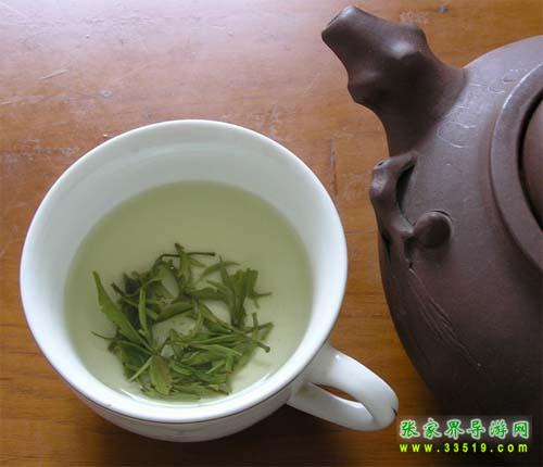 武陵源風(fēng)景區(qū)盛產(chǎn)香茶,著名的有“青巖茗翠”、“龍蝦花茶”、“黃石寨云霧茶”、“天崇毛尖”與“索溪毛尖”等。通過(guò)1982年評(píng)比,“青巖茗翠”獲部級(jí)金杯獎(jiǎng),同年又獲全國(guó)首屆食品博覽會(huì)銀獎(jiǎng)。“龍蝦花茶”也已列入全國(guó)名茶。人們經(jīng)過(guò)品嘗、評(píng)比,并經(jīng)茶葉專家鑒定,一致認(rèn)為“青巖茗翠”、“龍蝦花茶”等具有外形美觀,內(nèi)質(zhì)優(yōu)良等特點(diǎn)。這種茶葉,從外形來(lái)看,條索緊結(jié),圓渾彎曲,苗鋒顯露,銀毫滿披,色澤翠綠,從內(nèi)質(zhì)來(lái)看,清香馥郁,味醇回甘,湯色綠明,葉底均勻,飲后爽神,具有熟板栗蘭花之奇香,飲后回味無(wú)窮。據(jù)考證,“青巖茗翠”屬高山云霧茶一類。自古道:“高山出好水,云霧育佳茶”。黃石寨枇杷界海拔1000多米,氣候溫和,云霧繚繞,溫度適宜,因而,茶葉嫩度高,品質(zhì)好。這種獨(dú)特的環(huán)境為茶葉中的氨基酸,咖啡堿等有效成分的形成和增長(zhǎng),提供了優(yōu)越的生長(zhǎng)條件,而對(duì)質(zhì)地粗老的纖維素的形成,則又起到了抑制作用。還有,這些山峰上日照短,直射光少,漫射光多,晝夜溫差大,土質(zhì)的有機(jī)質(zhì)豐富,因而結(jié)構(gòu)疏松,排水又好。一切這些因素,都為茶葉的平穩(wěn)生長(zhǎng)創(chuàng)造了良好的條件。所以“青巖茗翠”茶,就博得了各地名家的一致好評(píng)。湖南省茶葉學(xué)會(huì)秘書長(zhǎng)、湖南農(nóng)學(xué)院副教授朱先明品了這種茶以后,賦詩(shī)贊美: